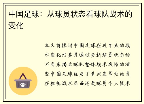 本文将探讨中国足球在近年来的战术变化,尤其是通过分析球员状态的不同来揭示球队整体战术风格的演变。中国足球经历了多次变革,无论是在教练战术层面,还是球员个人技术和体能状态的变化,球队的表现都直接受其影响。本文将从四个方面进行详细阐述:球员的身体状态与战术适应性、技术能力与战术选择的关系、球员心理状态对球队战术的影响以及战术执行中的集体协作性如何受球员状态变化的驱动。通过对这些方面的深入分析,能够更清...