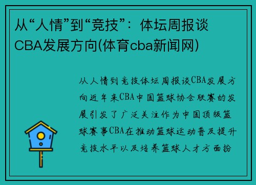 从“人情”到“竞技”:体坛周报谈CBA发展方向(体育cba新闻网)